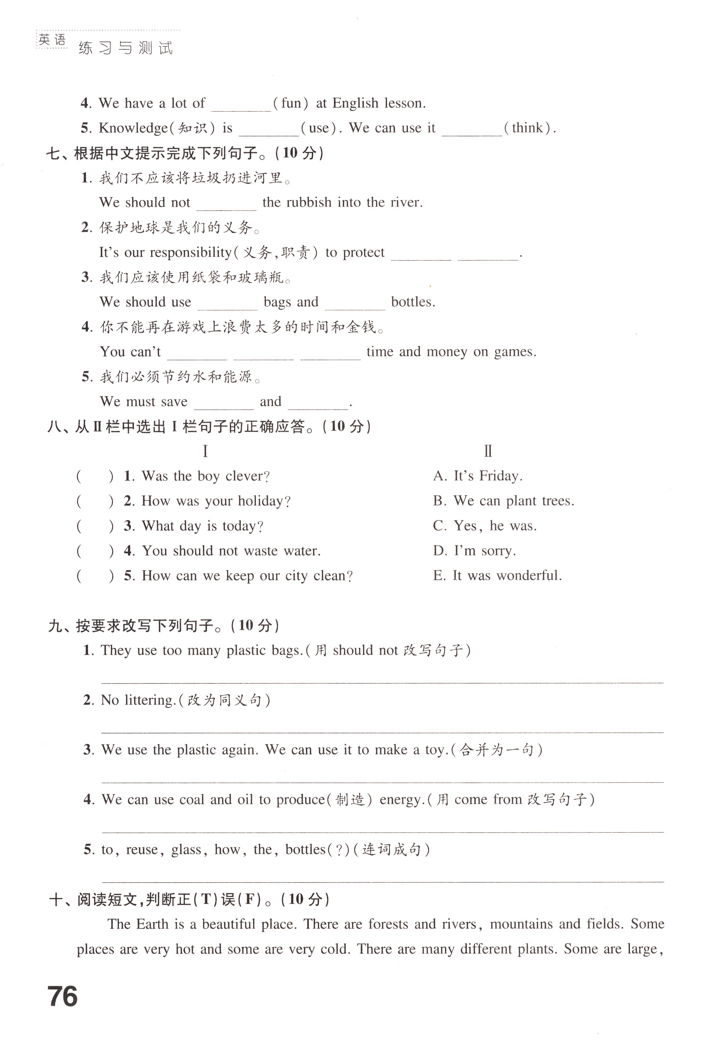 Test for Unit 7第76页全部答案解析