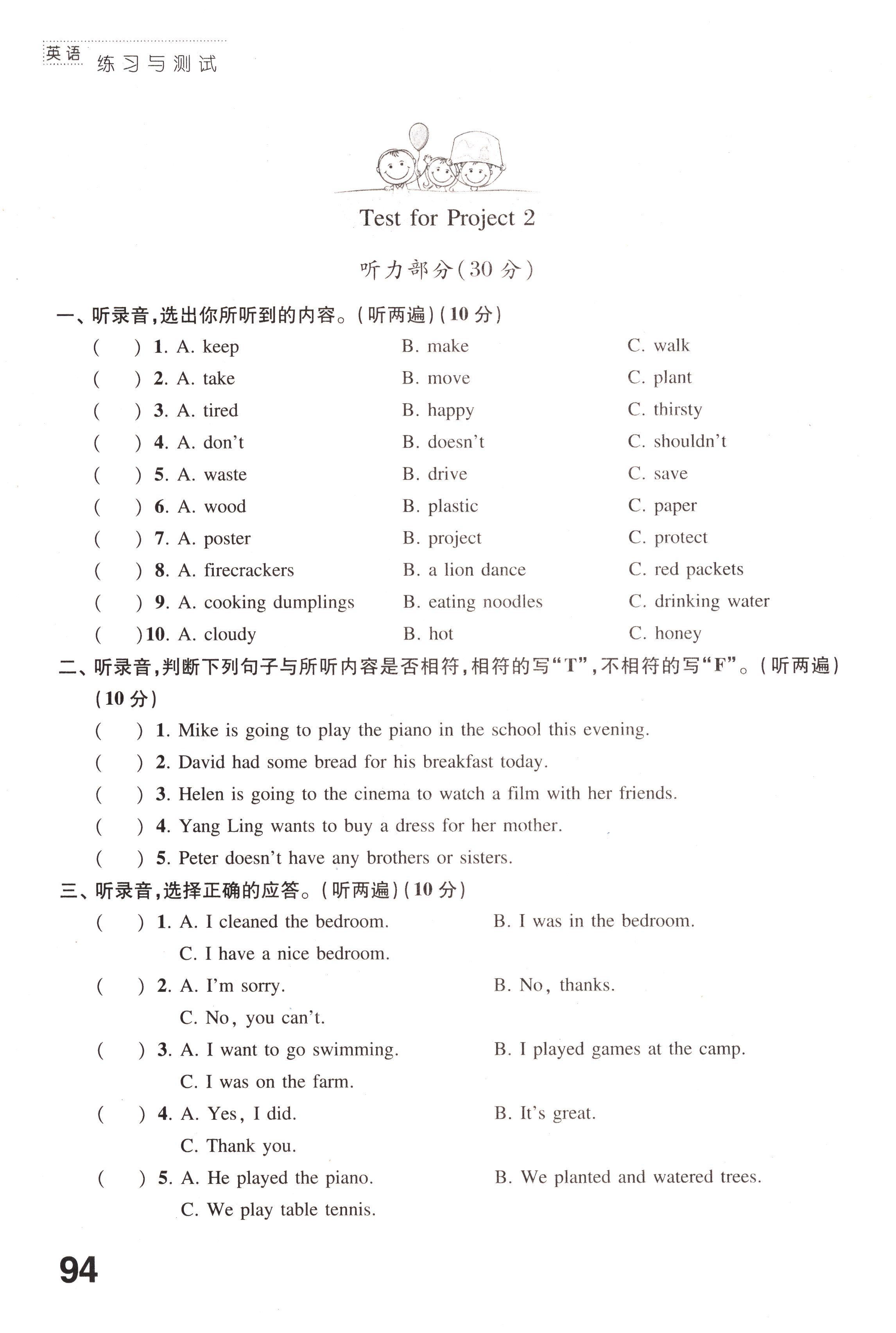 Test for Project 2第94页全部答案解析