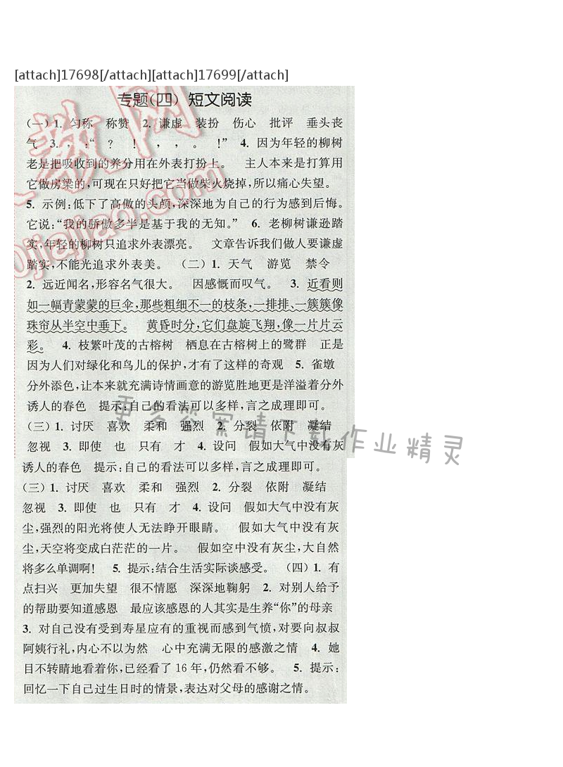 2017年通城学典六年级语文下册S版 期末复习 专题(四)
