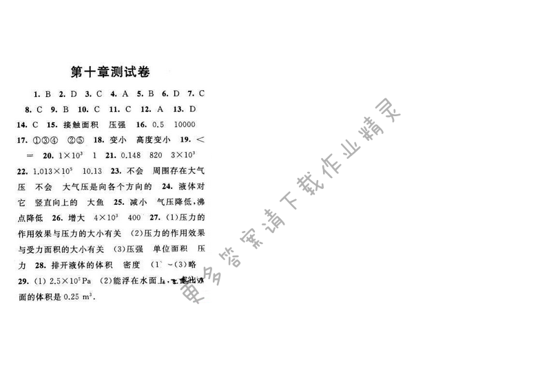 启东黄冈作业本八年级物理下册苏科版 第十章测试卷