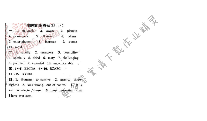 2016年通城学典小题精练九年级英语下册译林版 期末知识梳理(Unit4)
