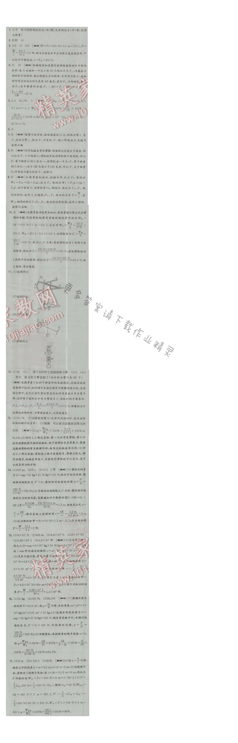 经纶学典学霸九年级物理上册江苏版 单元提优 简单机械和功