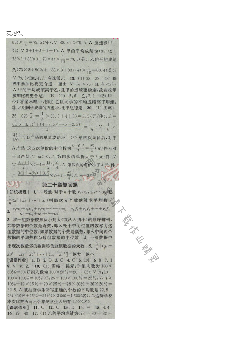 2017年通城学典课时作业本八年级数学下册人教版 第二十章复习课