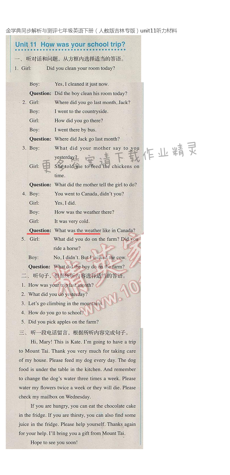 金学典同步解析与测评七年级英语下册(人教版吉林专版)unit11听力材料