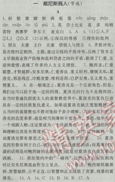 2017年课时提优计划作业本九年级语文下册苏教版 一 威尼斯商人