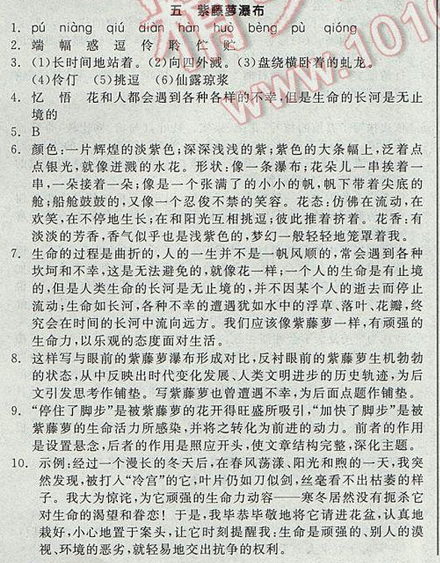 2017全品学练考八年级语文下册苏教版五、紫藤萝瀑布