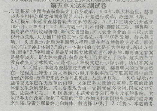 2017人教版全科王同步课时练习九年级历史 第五单元达标测试