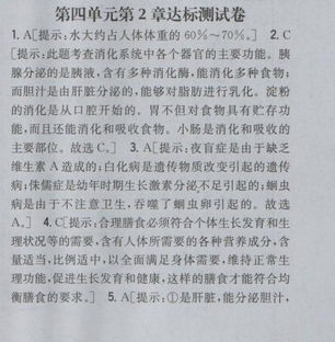 2017八年级生物全科王同步课时练习 第四单元第二章测试