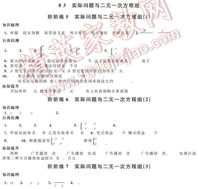 2017年绿色指标自我提升七年级数学下册 8.3 实际问题与二元一次方程组