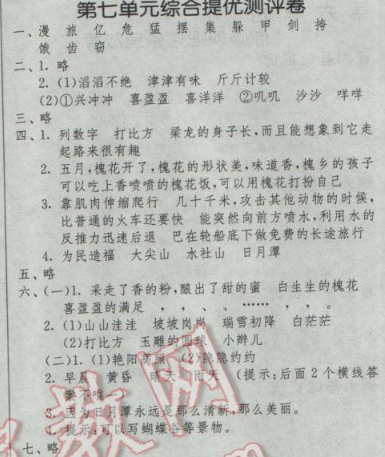 实验班提优训练三年级语文下册 第七单元综合提优测评卷