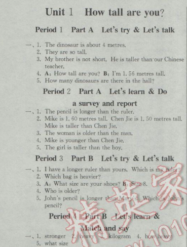 2017实验班提优训练六年级英语下册 听力Unit 1 How tall are you?