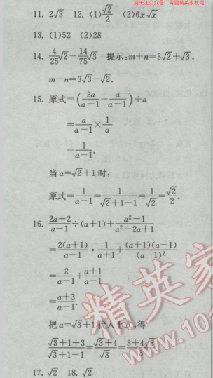 2017实验班提优训练八年级数学下册12.3 二次根式的加减(1)