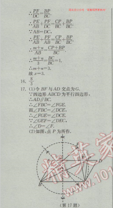 2017实验班提优训练九年级数学下册6.4 探索三角形相似的条件(1)
