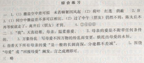 人教版七年级上册语文第一单元综合练习补充习题答案
