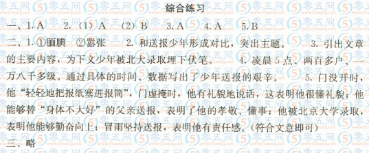 人教版七年级下册语文第一单元综合练习补充习题答案