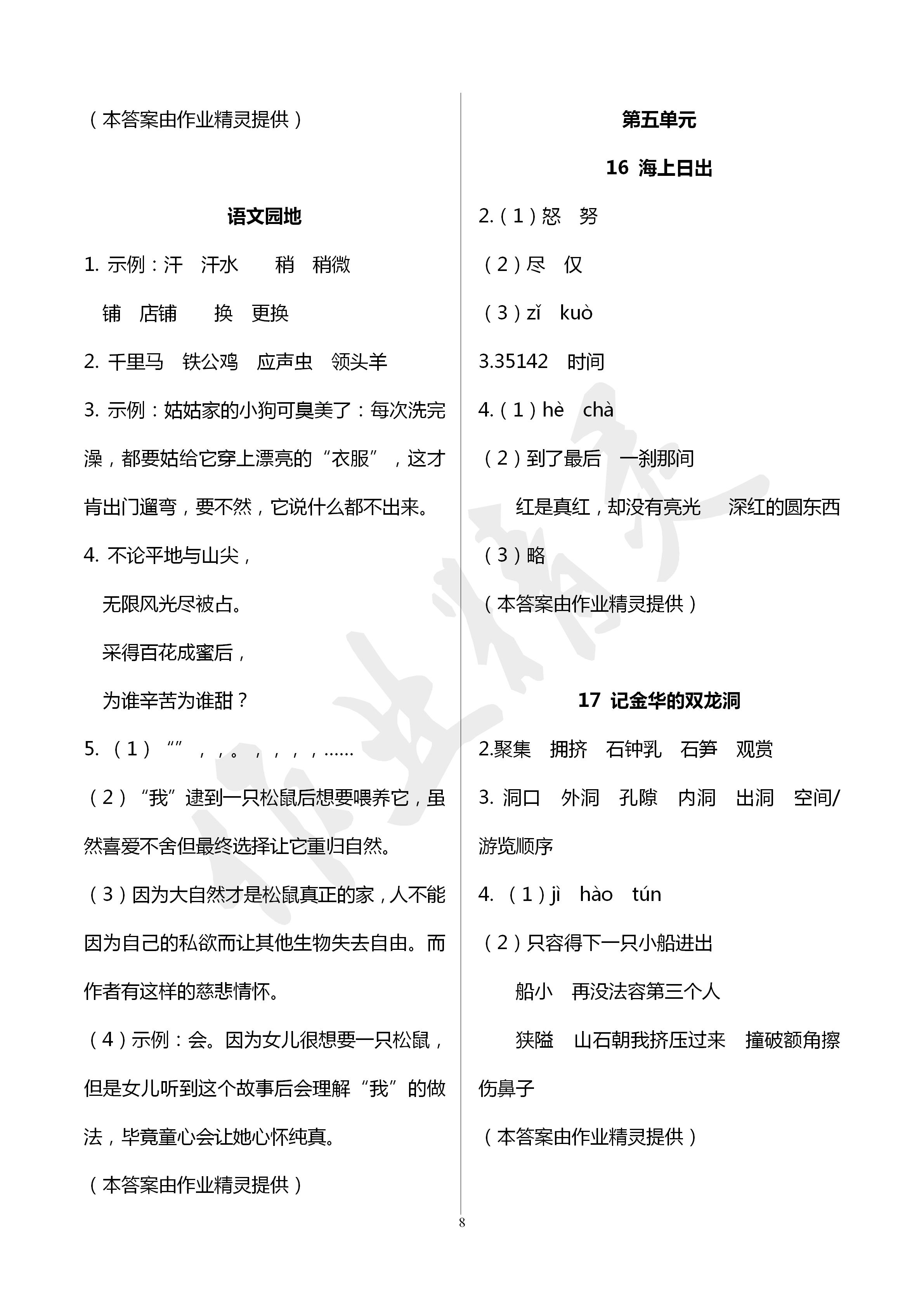2020年作业本四年级语文下册人教版浙江教育出版社第8页