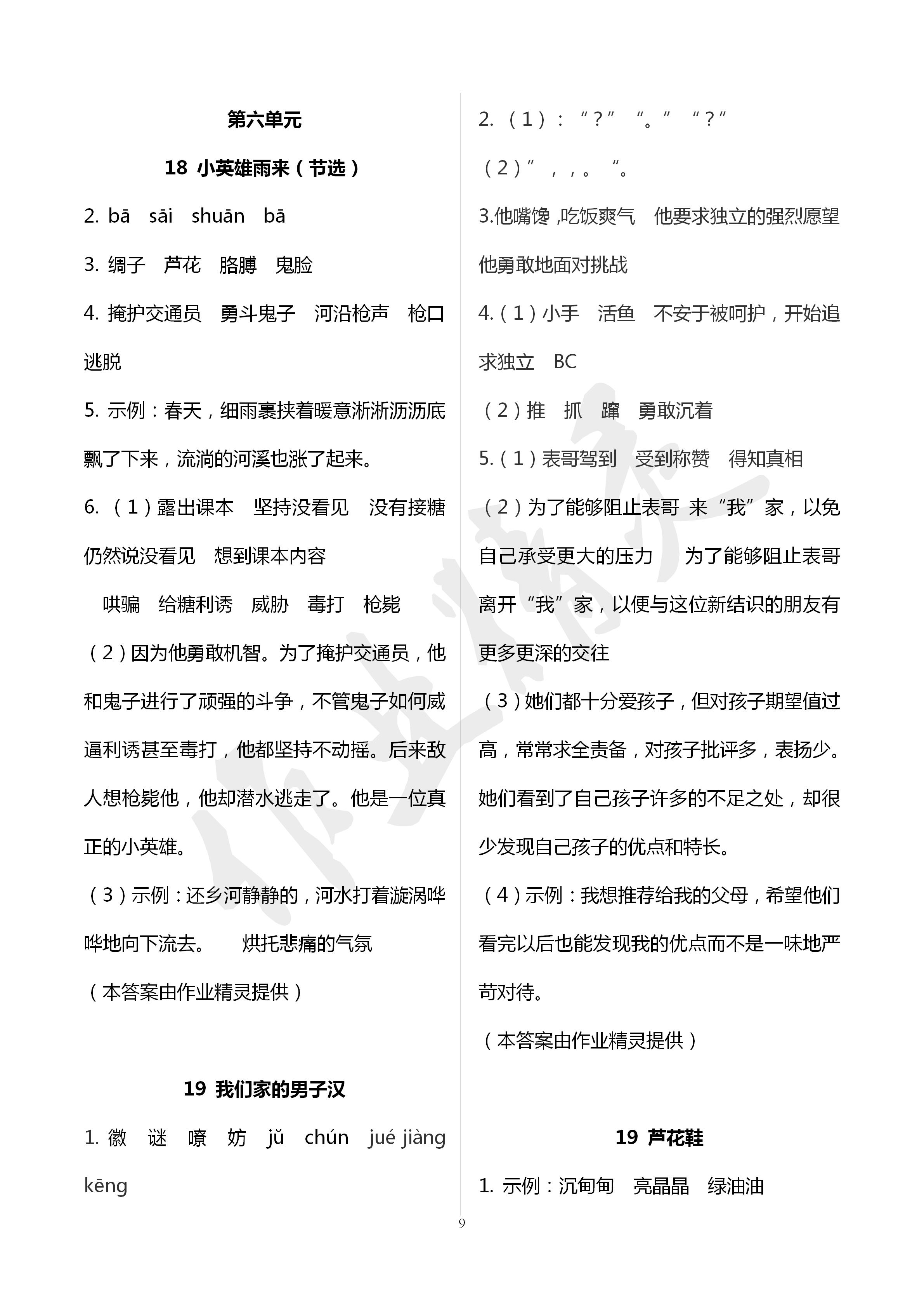 2020年作业本四年级语文下册人教版浙江教育出版社第9页