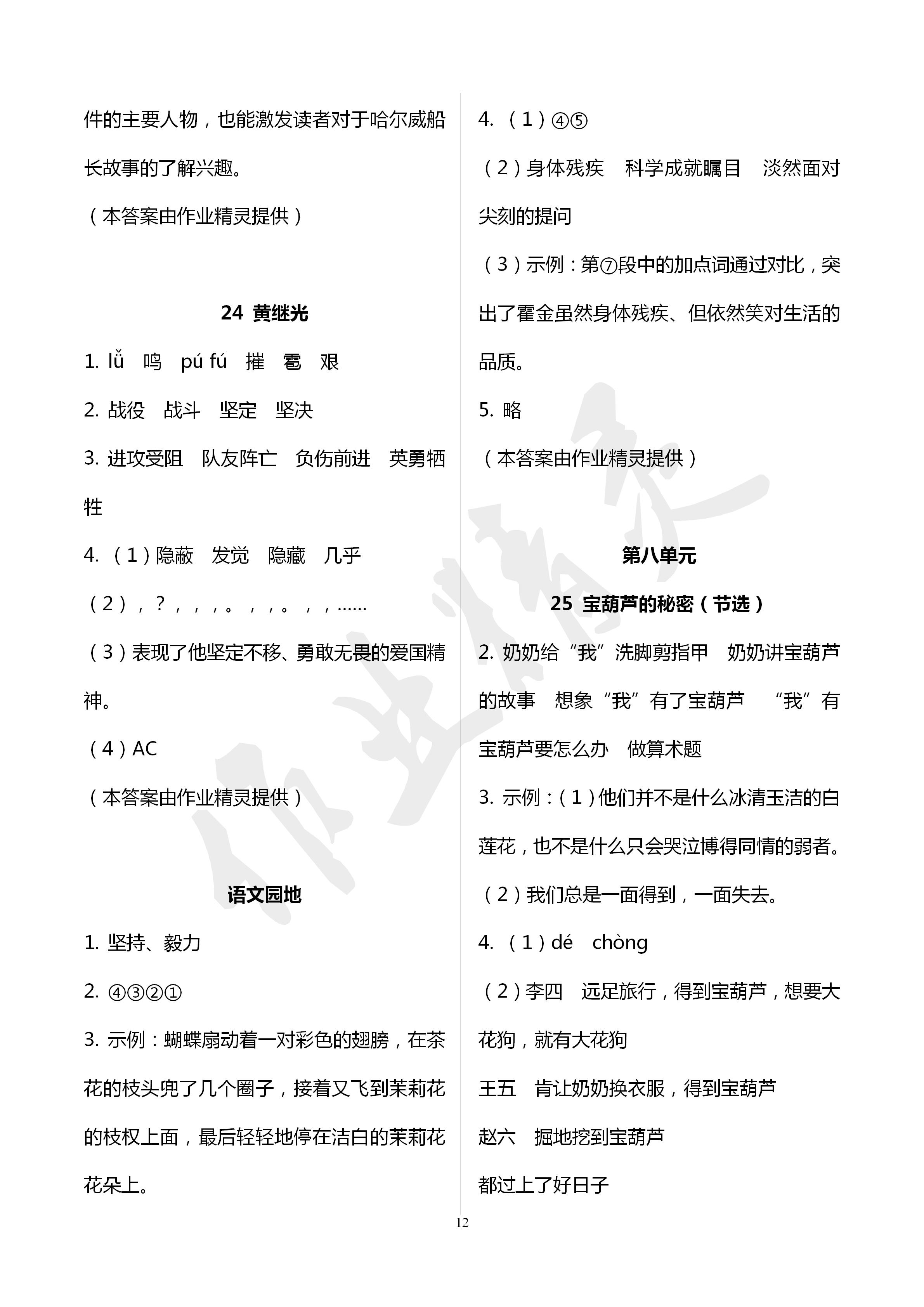 2020年作业本四年级语文下册人教版浙江教育出版社第12页