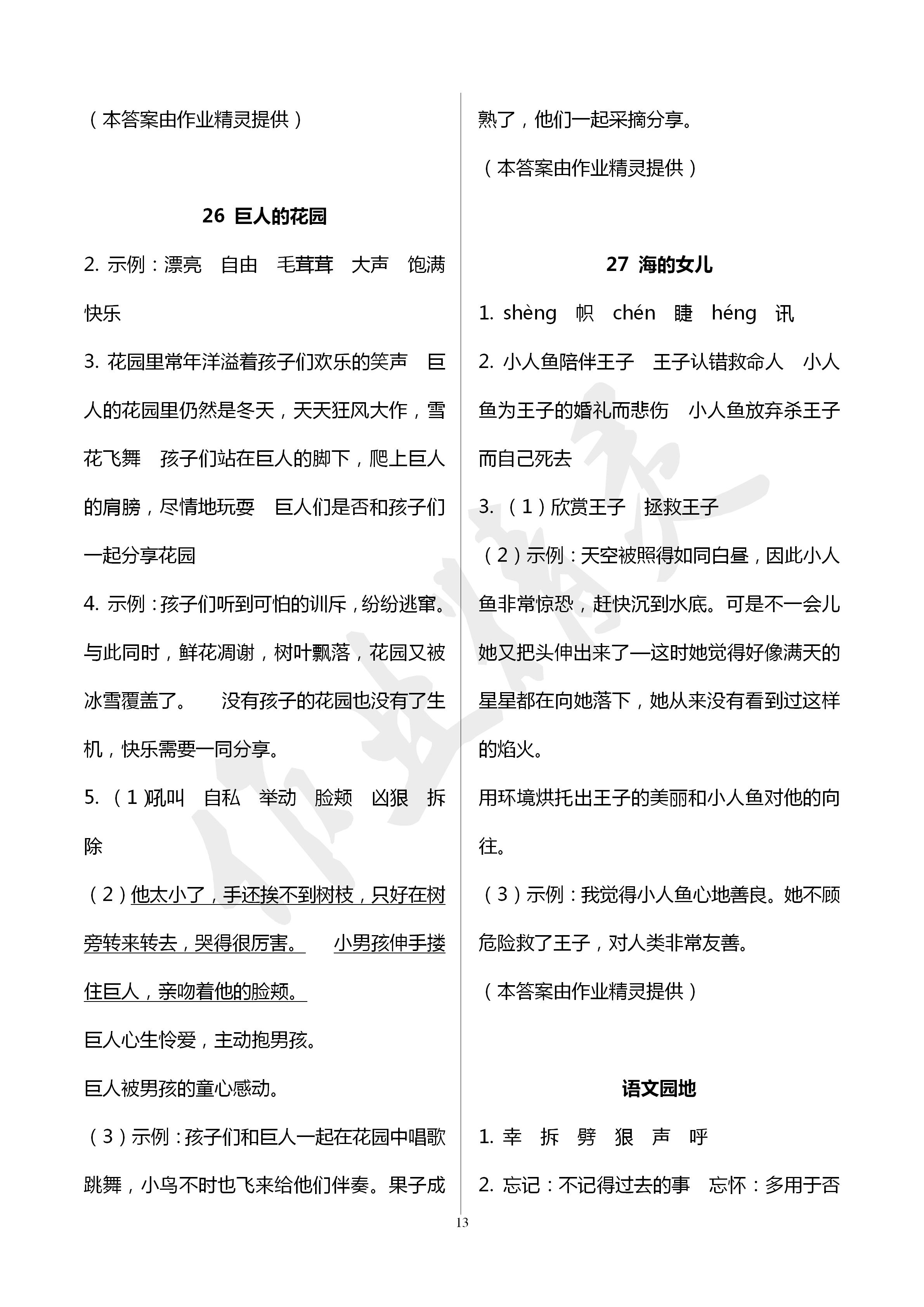 2020年作业本四年级语文下册人教版浙江教育出版社第13页