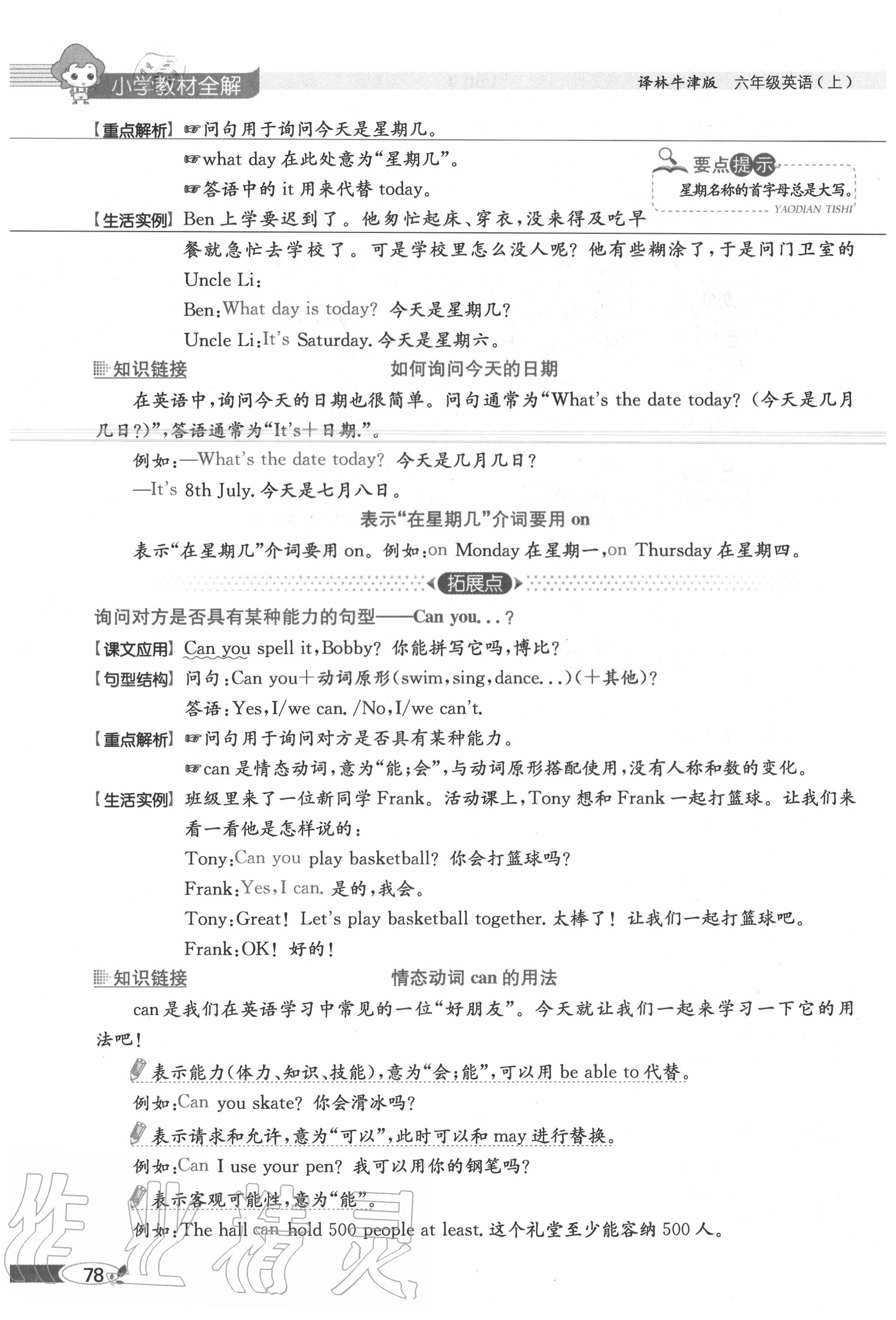 2020年教材课本六年级英语上册译林版参考答案第78页