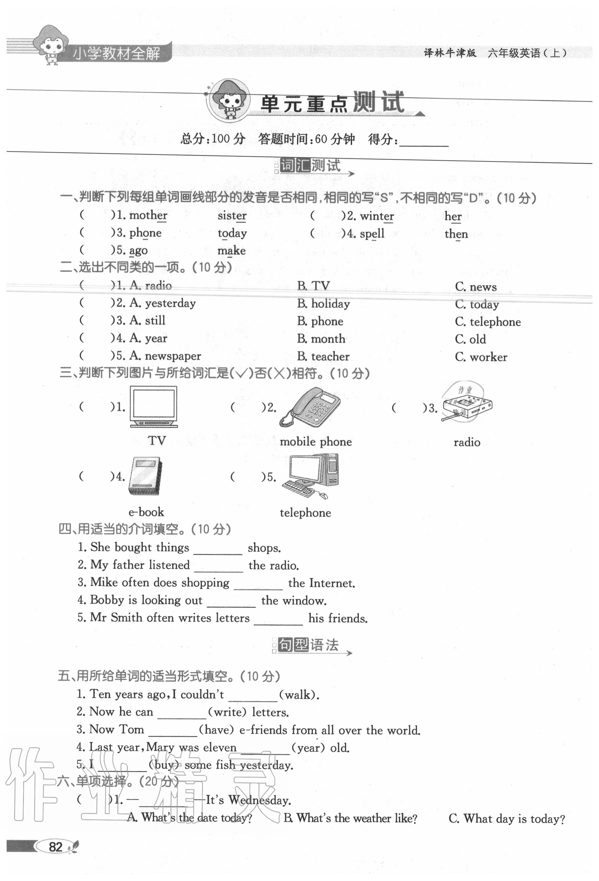 2020年教材课本六年级英语上册译林版参考答案第82页