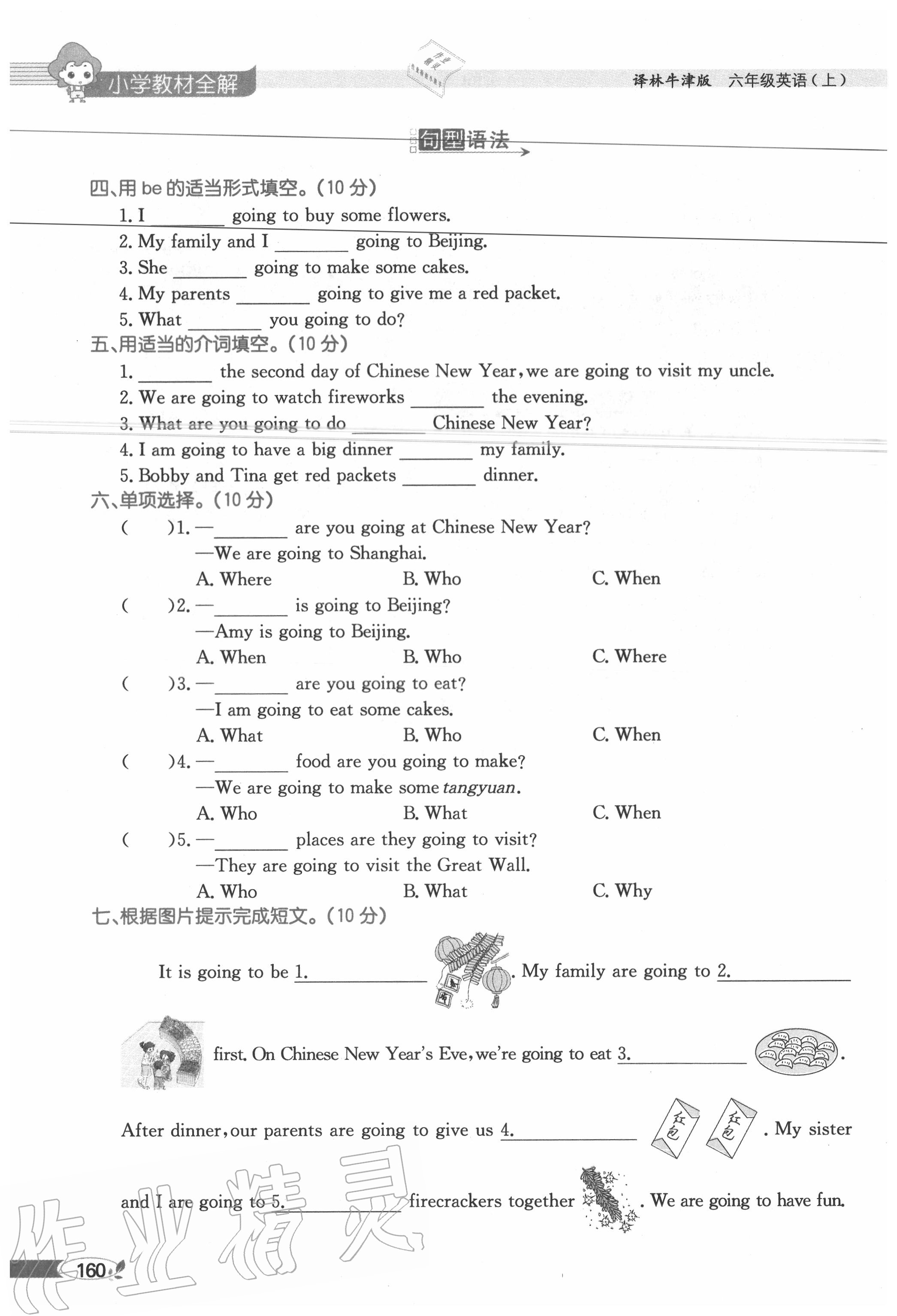 2020年教材课本六年级英语上册译林版参考答案第160页