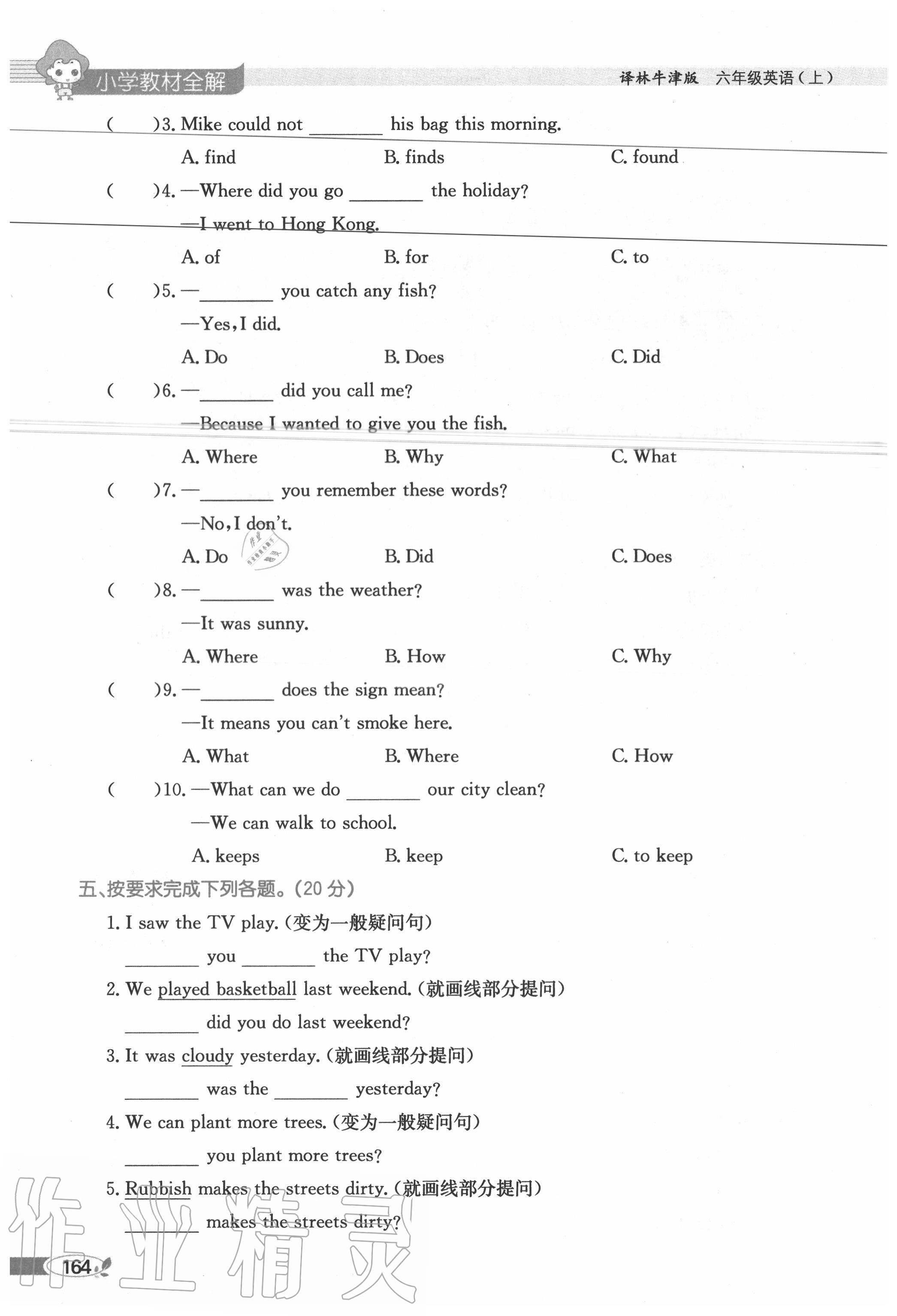 2020年教材课本六年级英语上册译林版参考答案第164页