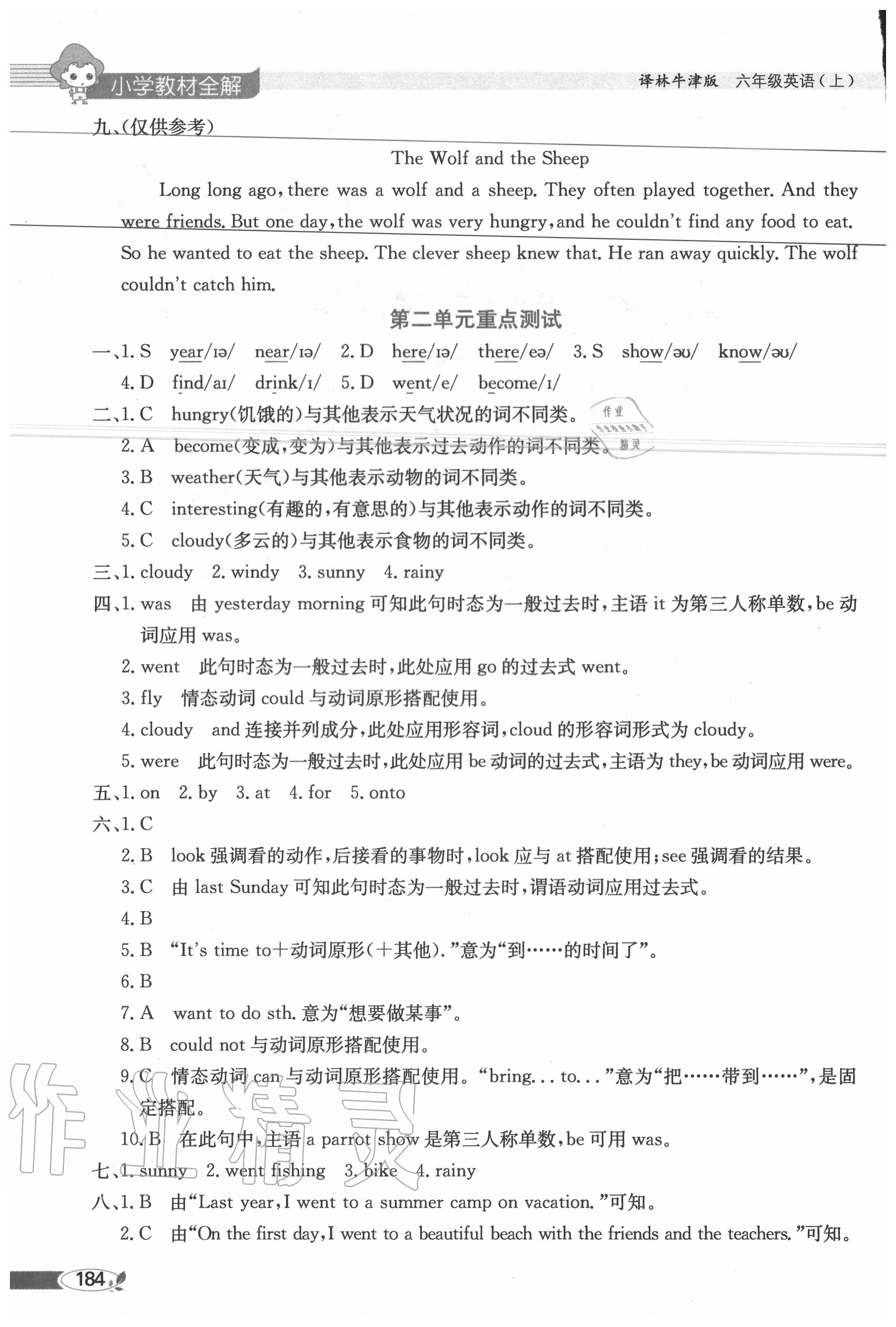 2020年教材课本六年级英语上册译林版参考答案第184页