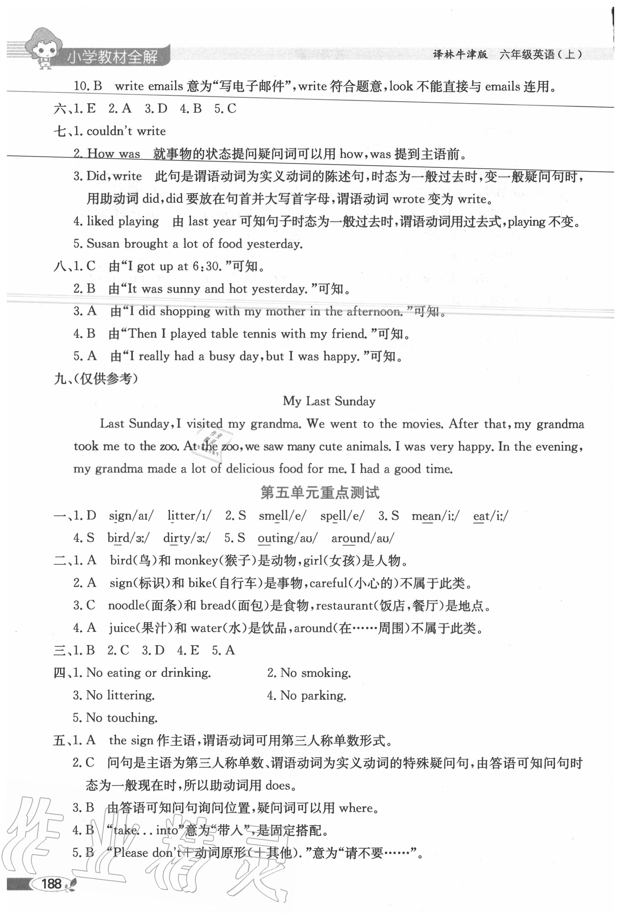 2020年教材课本六年级英语上册译林版参考答案第188页