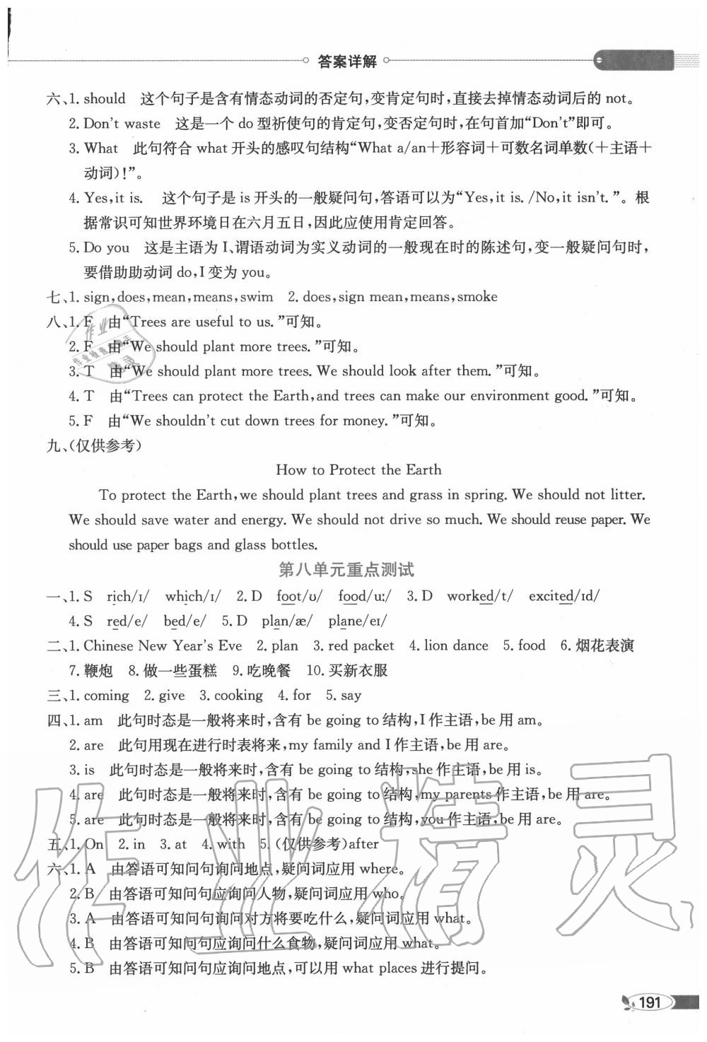2020年教材课本六年级英语上册译林版参考答案第191页