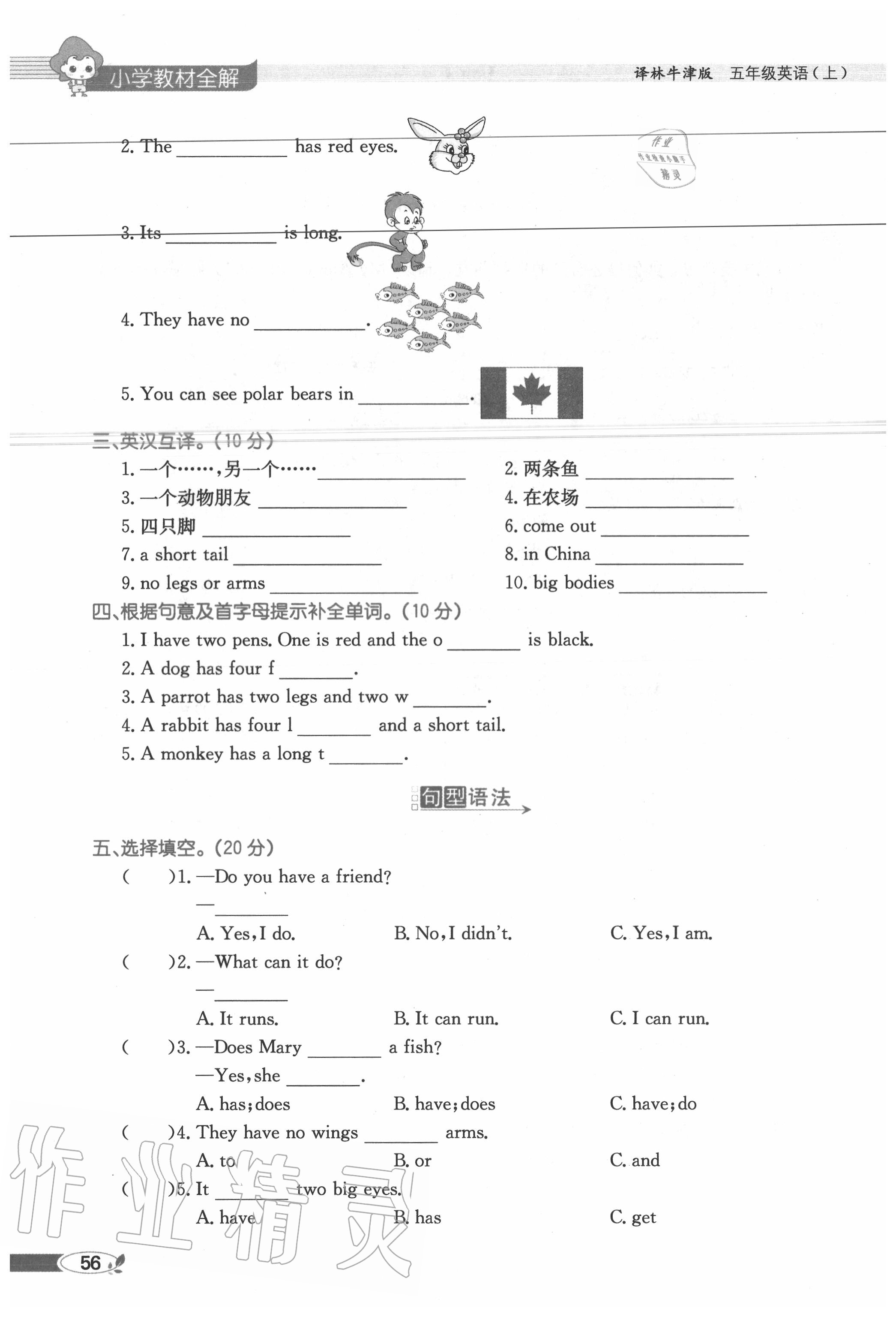 2020年教材课本五年级英语上册译林版参考答案第56页
