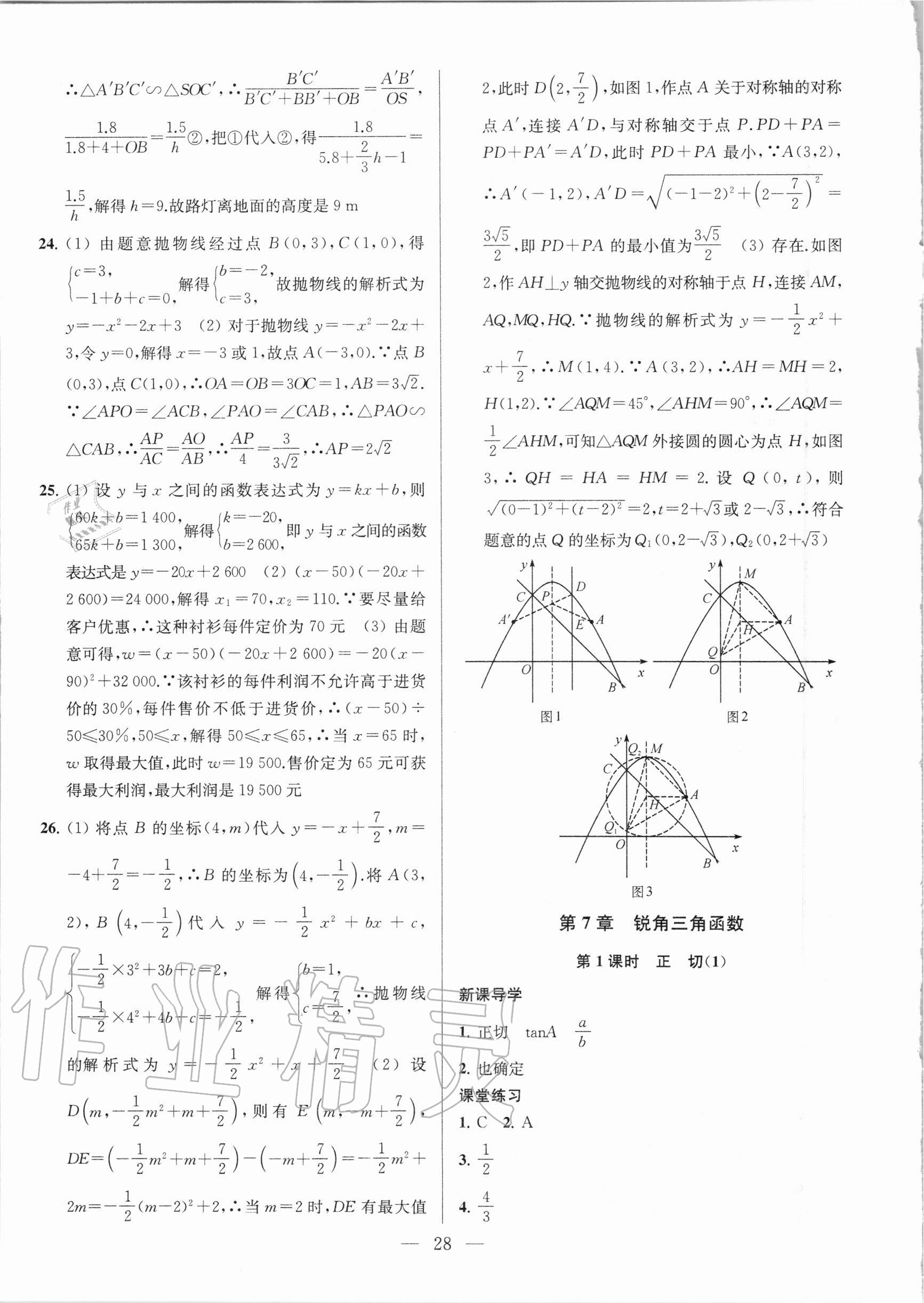 2021年金钥匙课时学案作业本九年级数学下册国标江苏版第28页