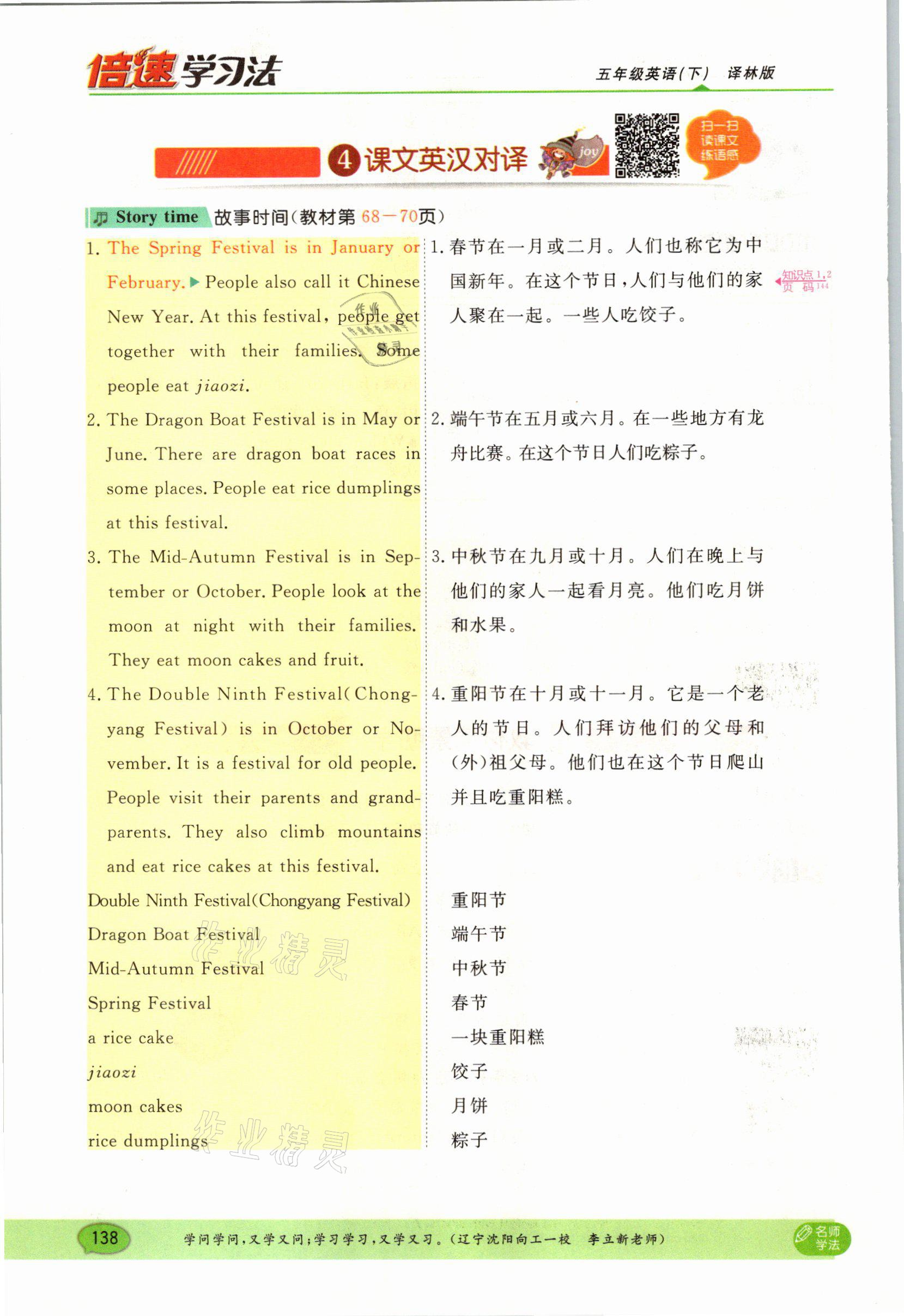 2021年教材课本五年级英语下册译林版参考答案第134页