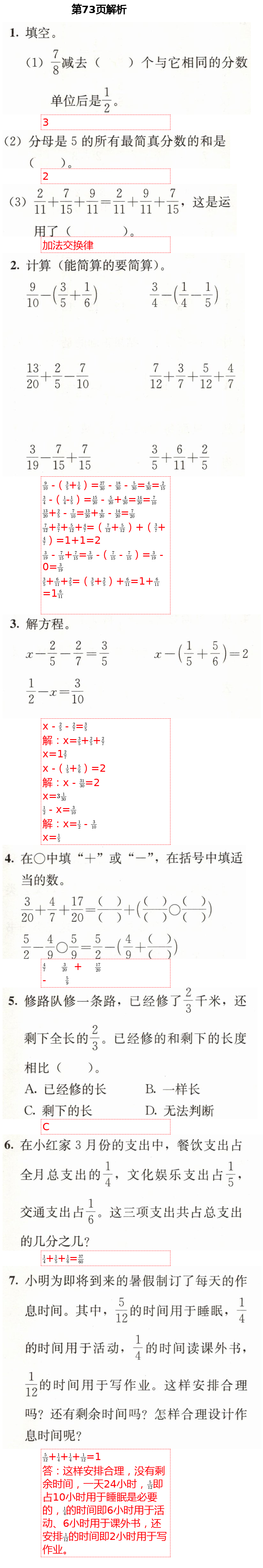 2021年人教金学典同步解析与测评五年级数学下册人教版参考答案第104页