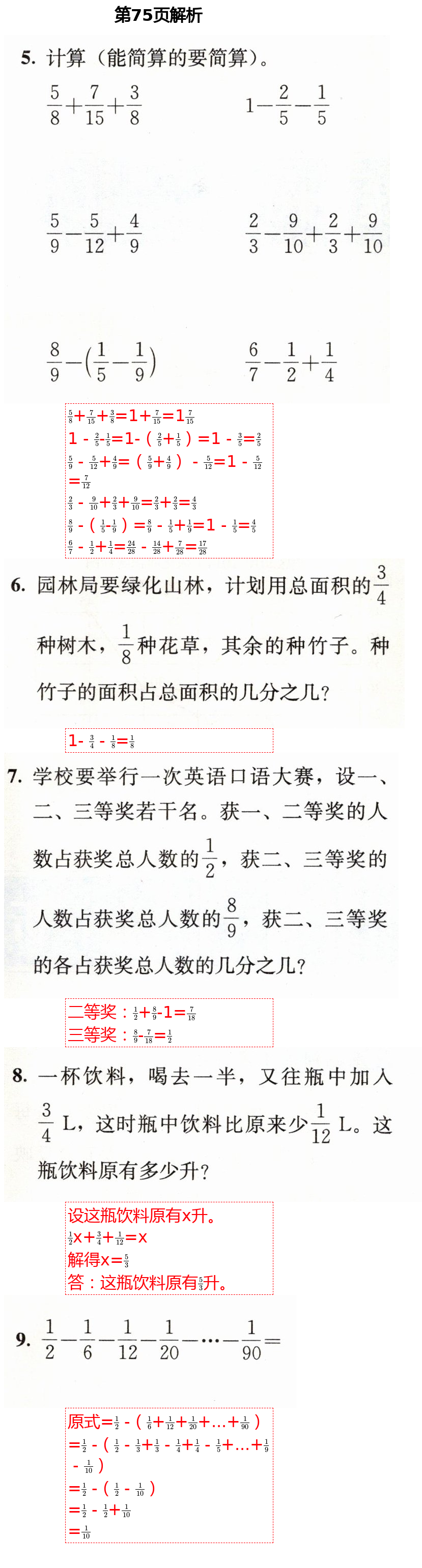 2021年人教金学典同步解析与测评五年级数学下册人教版参考答案第106页
