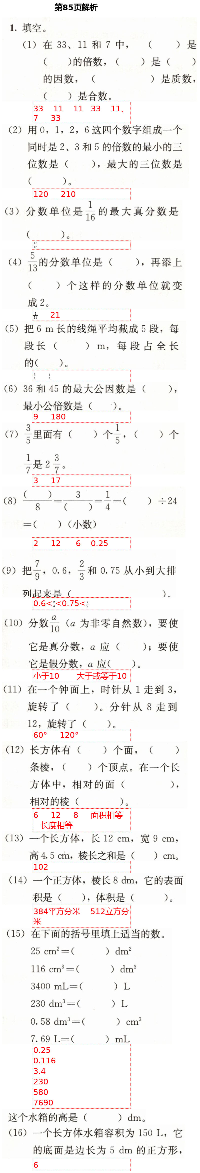 2021年人教金学典同步解析与测评五年级数学下册人教版参考答案第116页