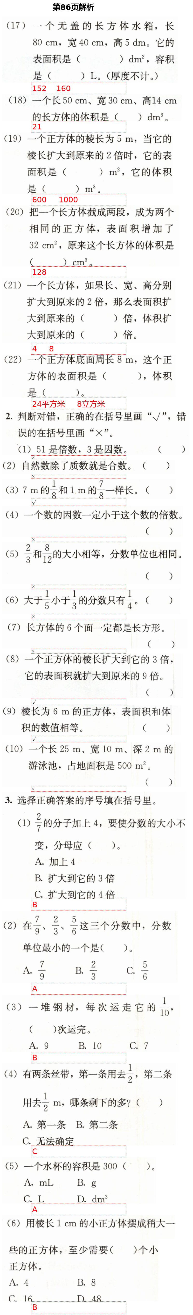 2021年人教金学典同步解析与测评五年级数学下册人教版参考答案第117页
