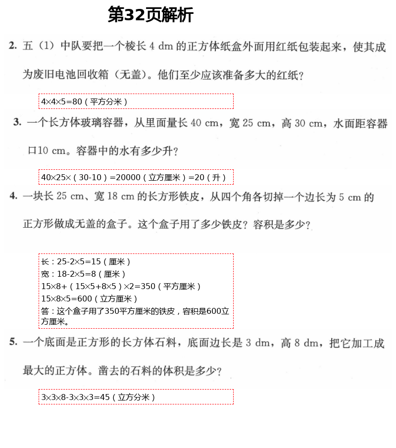 2021年人教金学典同步解析与测评五年级数学下册人教版第32页