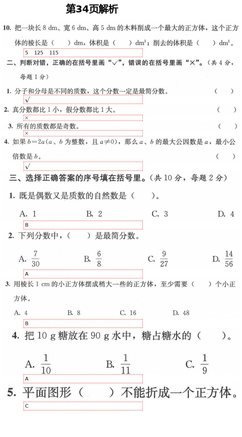 2021年人教金学典同步解析与测评五年级数学下册人教版第34页