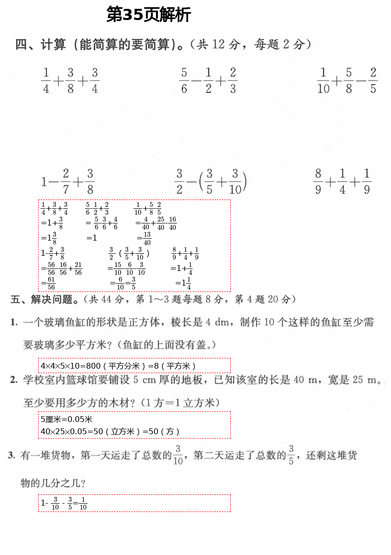 2021年人教金学典同步解析与测评五年级数学下册人教版第35页