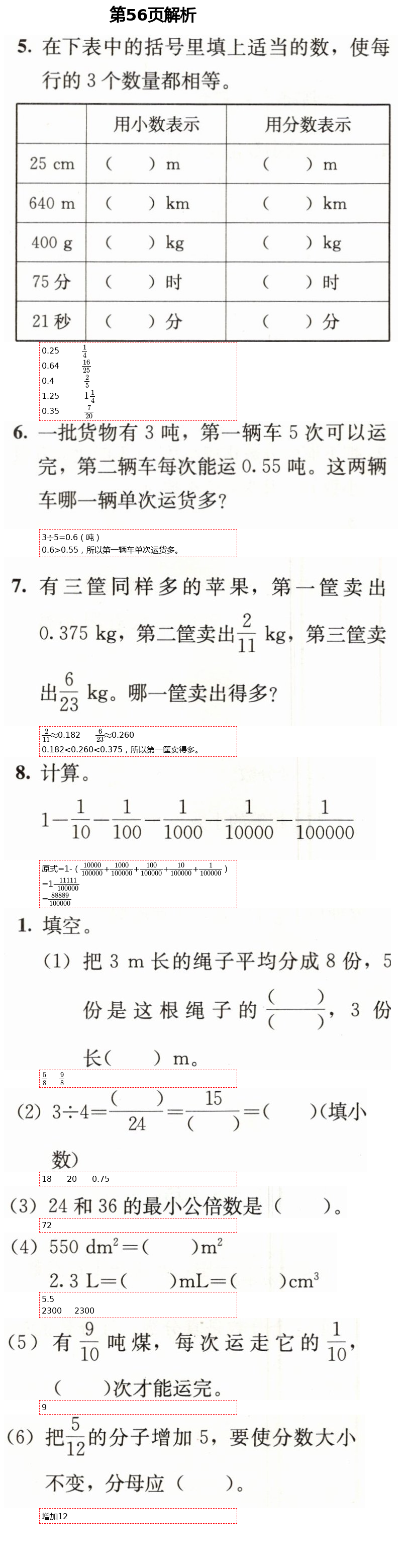 2021年人教金学典同步解析与测评五年级数学下册人教版第56页