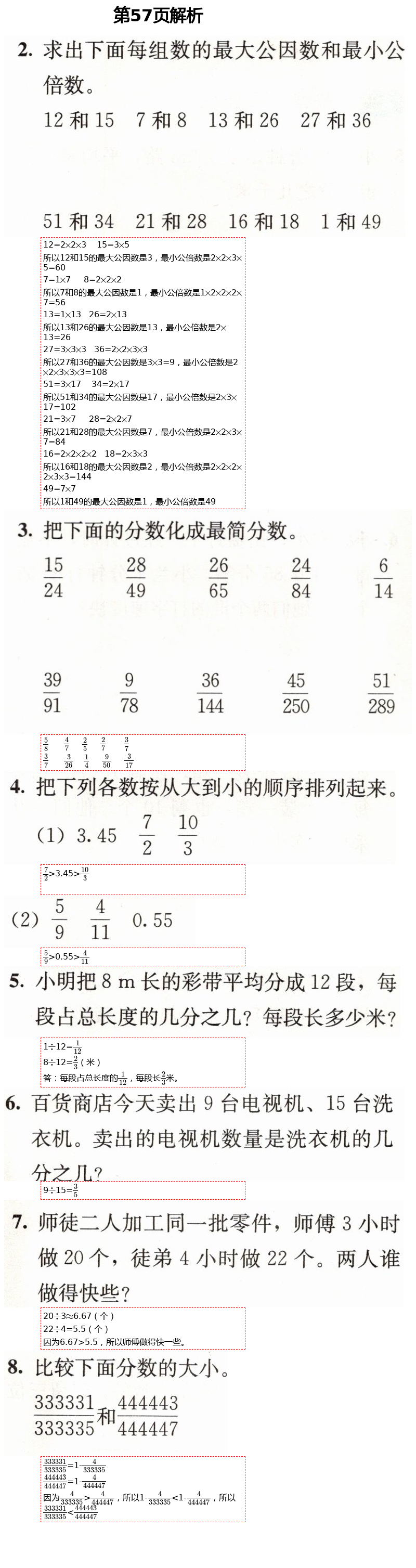 2021年人教金学典同步解析与测评五年级数学下册人教版第57页