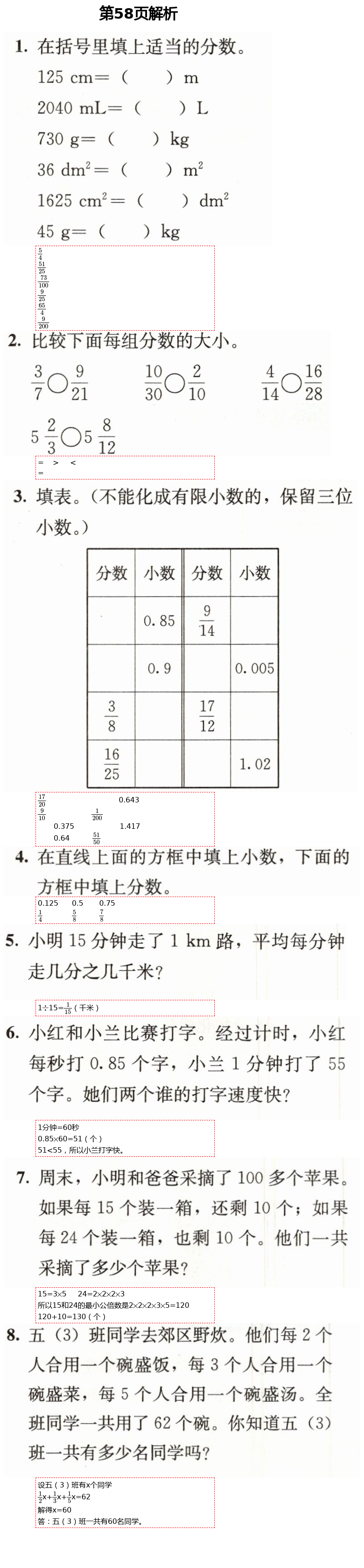 2021年人教金学典同步解析与测评五年级数学下册人教版第58页