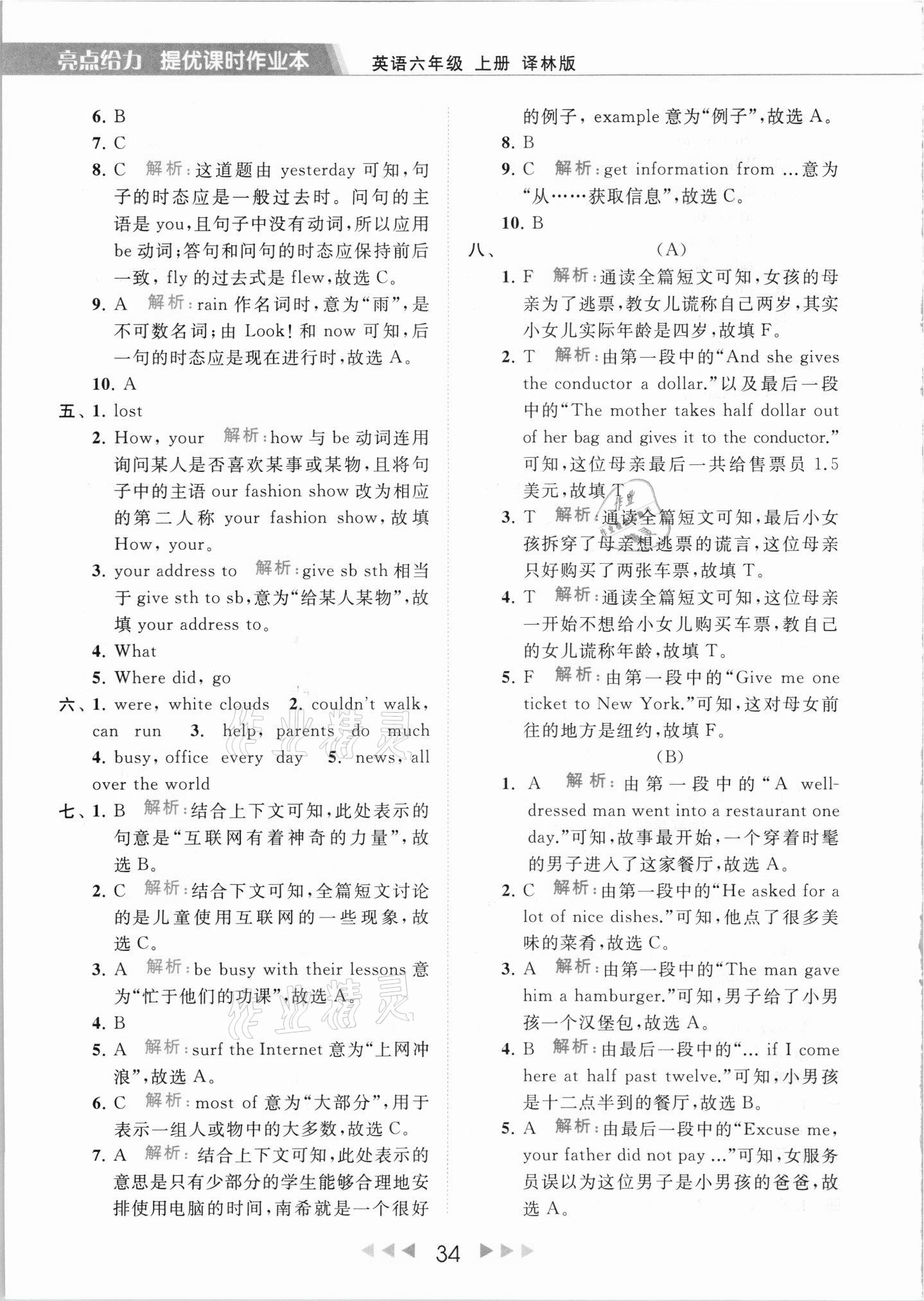 2021年亮点给力提优课时作业本六年级英语上册译林版第34页