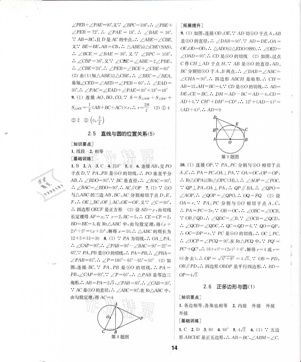 2021年创新优化学案九年级数学上册江苏版参考答案第14页