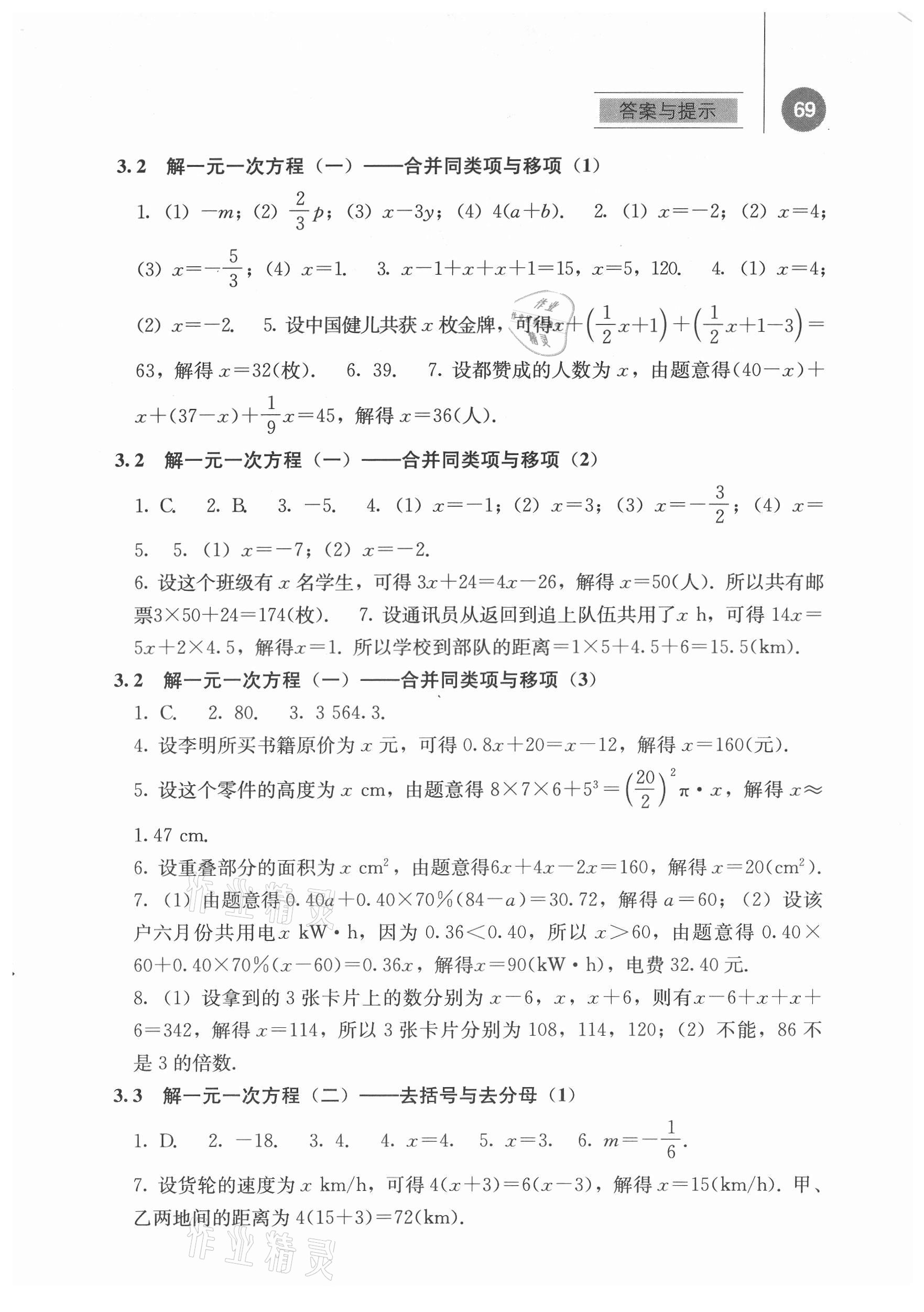 2021年补充习题七年级数学上册人教版人民教育出版社第7页