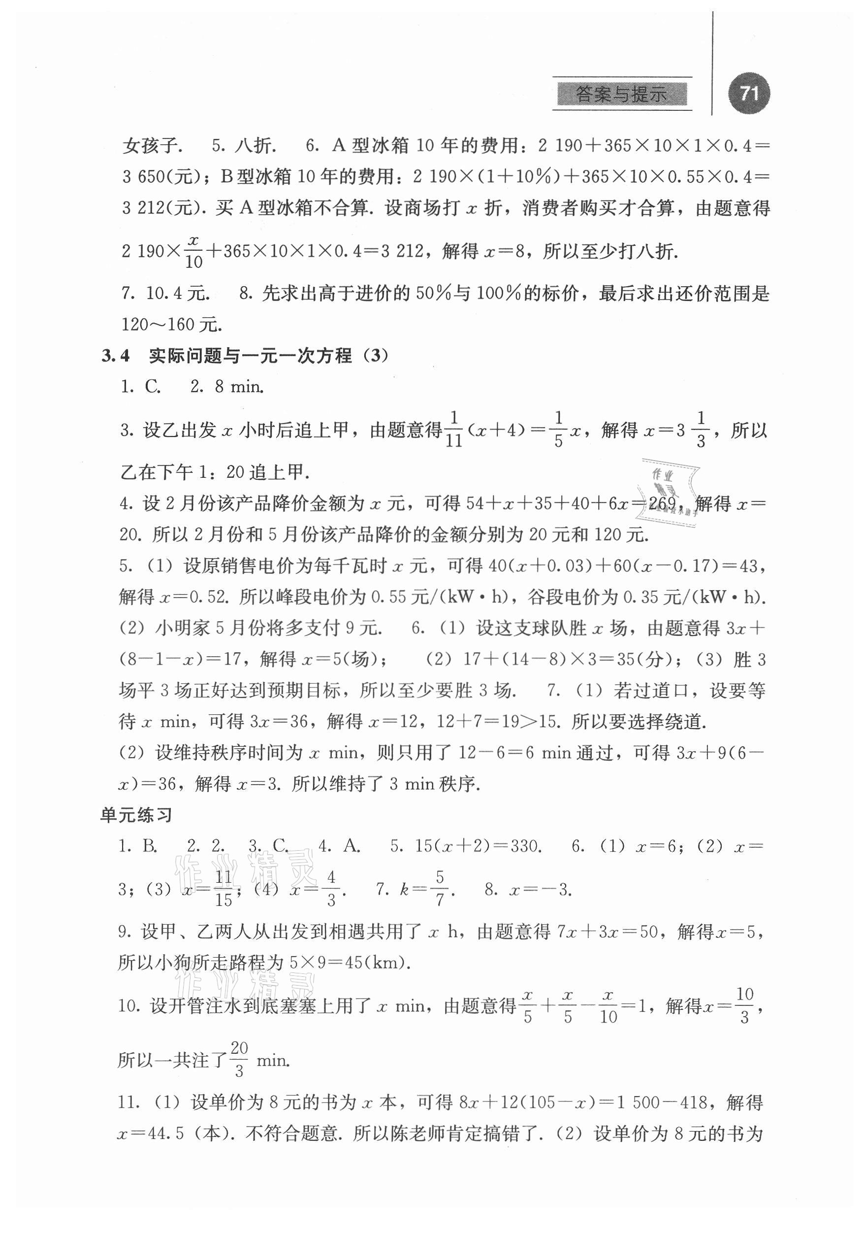 2021年补充习题七年级数学上册人教版人民教育出版社第9页