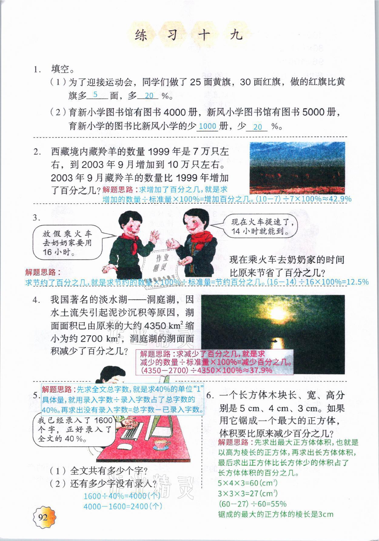 2021年教材课本六年级数学上册人教版参考答案第91页
