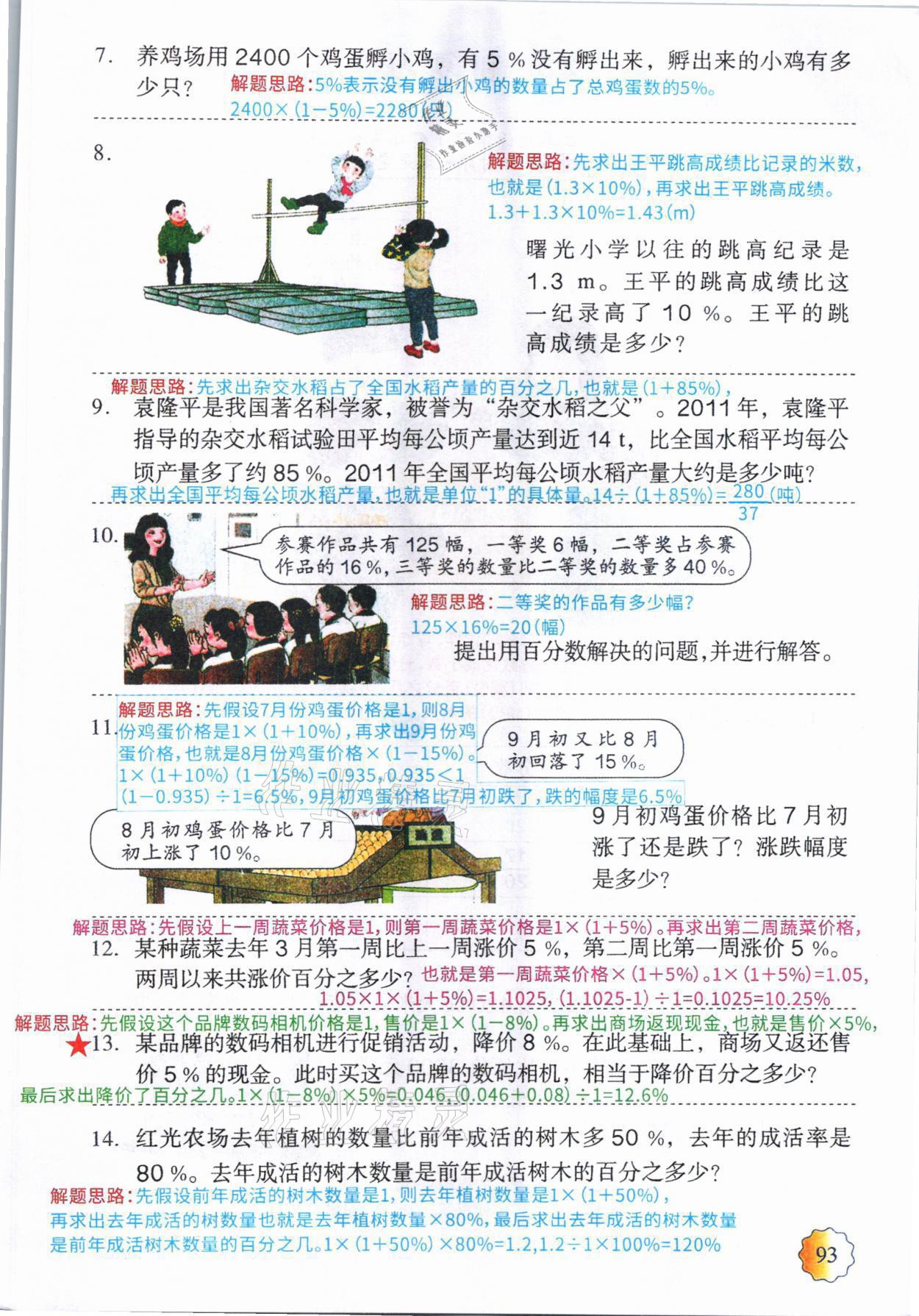 2021年教材课本六年级数学上册人教版参考答案第92页