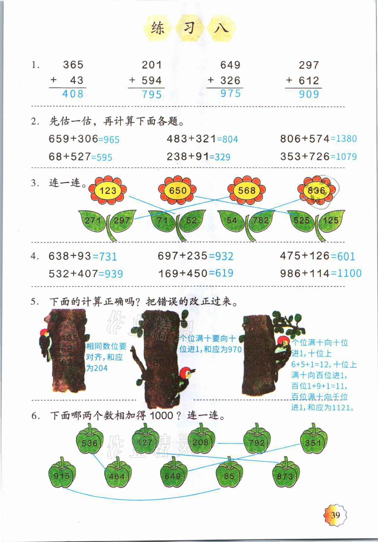 2021年教材课本三年级数学上册人教版参考答案第38页